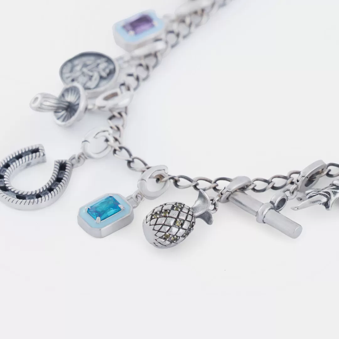 For a playful charm stack, wear the Pineapple Charm with the Mushroom & Strawberry charms. The Silver Pineapple Charm also comes in Gold.